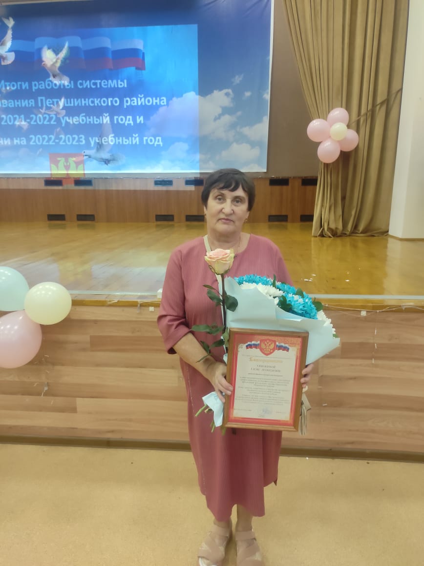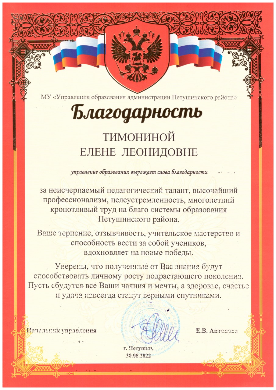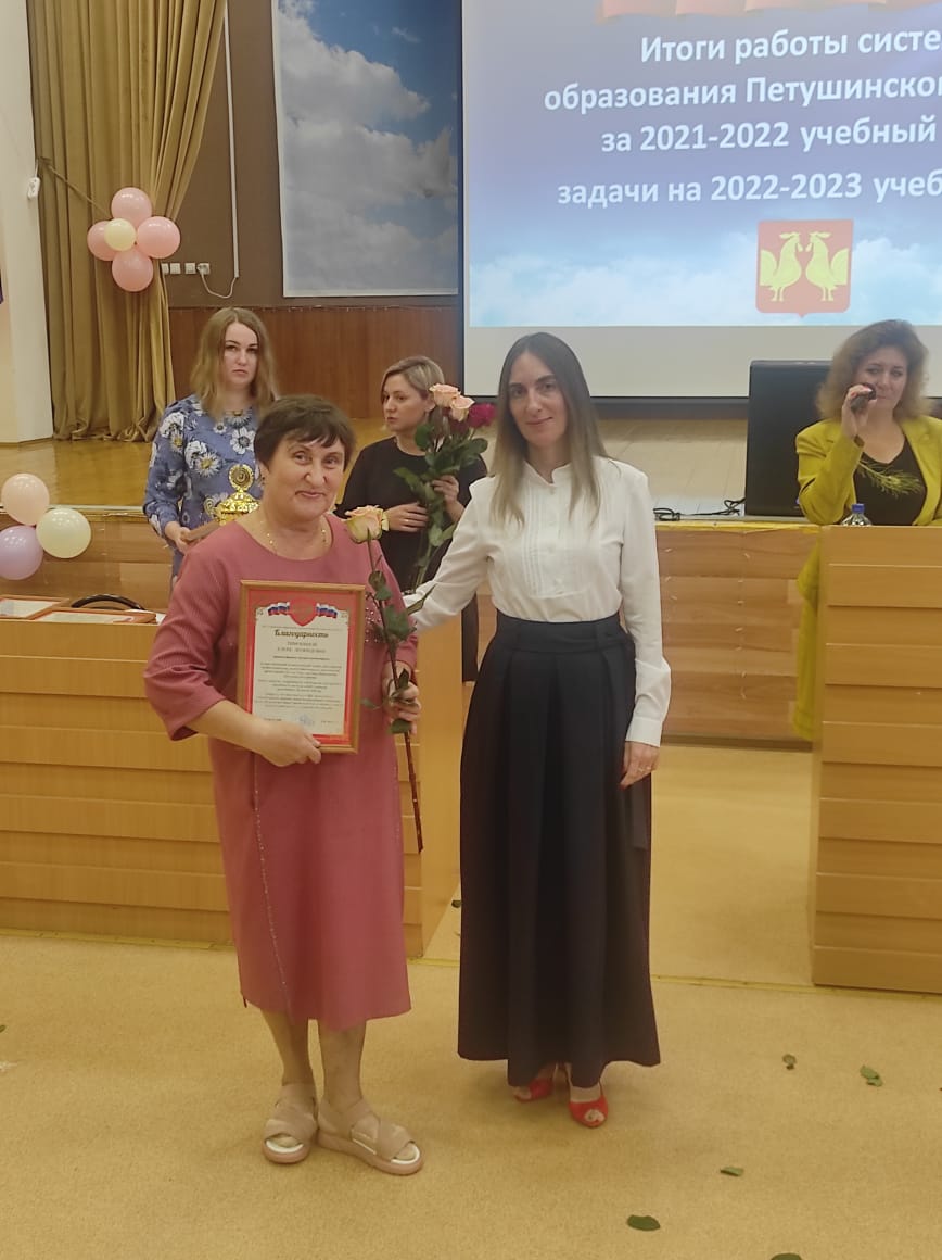 30 августа 2022 года на ежегодной августовской конференции работников образования муниципального образования "Петушинский район" нашему уважаемому педагогу Тимониной Елене Леонидовне была вручена