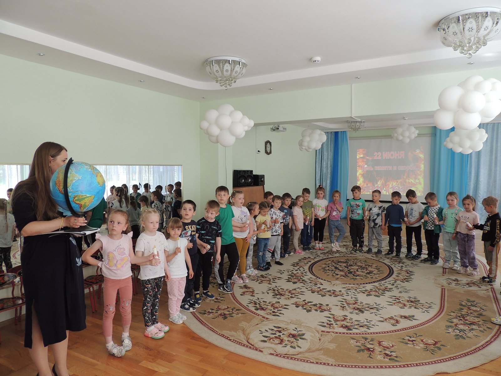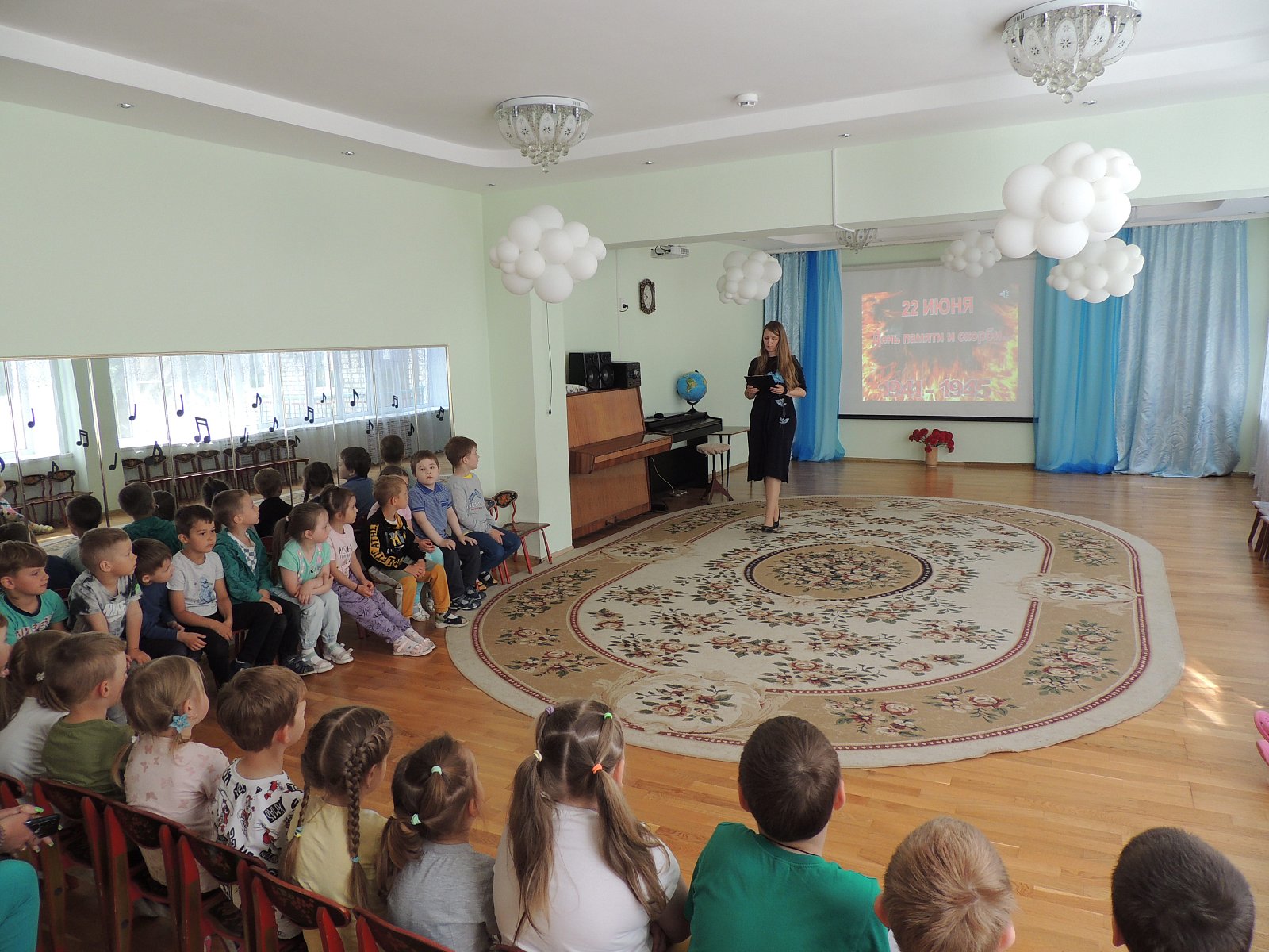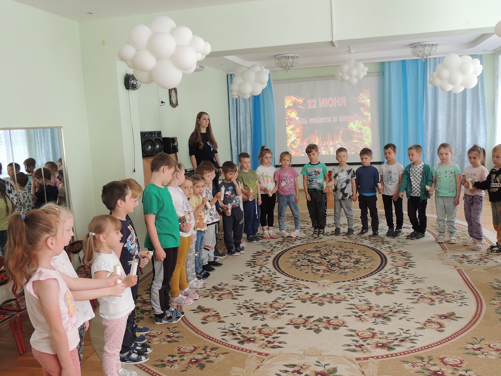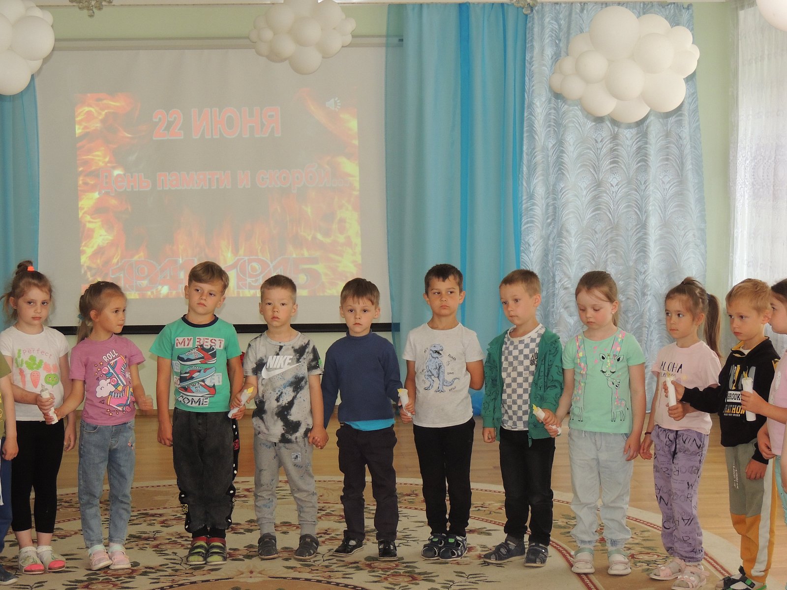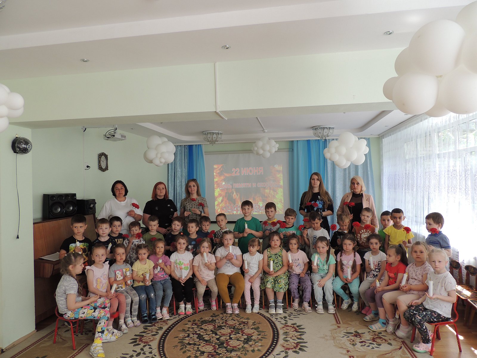 В нашем детском саду прошел День памяти и скорби, посвященный началу Великой Отечественной войны. В этот день мы провели мероприятие под названием «Знаем,помним,гордимся» .Детям был показан видеоролик «Великая Отечественная война», звучали военные песни,ребята узнали о вероломном нападении фашистских войск, о долгих и тяжелых годах войны, о героических поступках простых людей, о детях – героях войны.