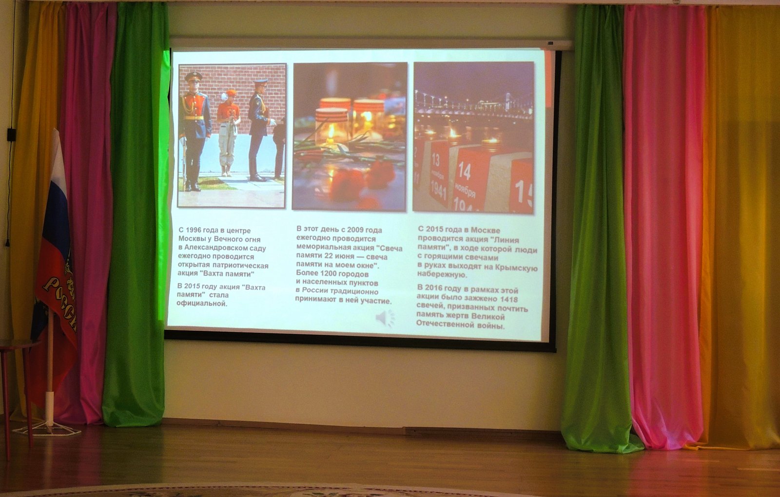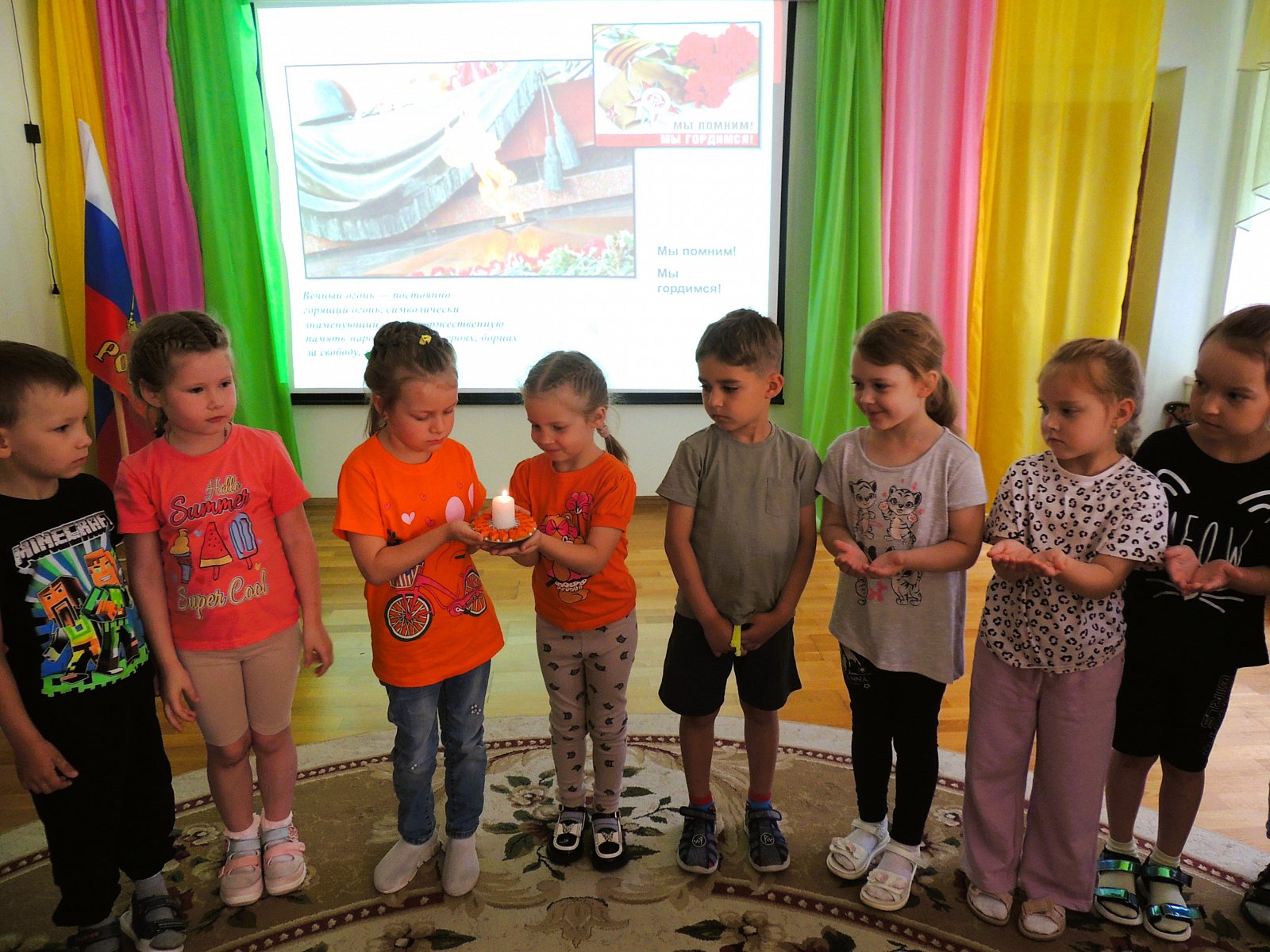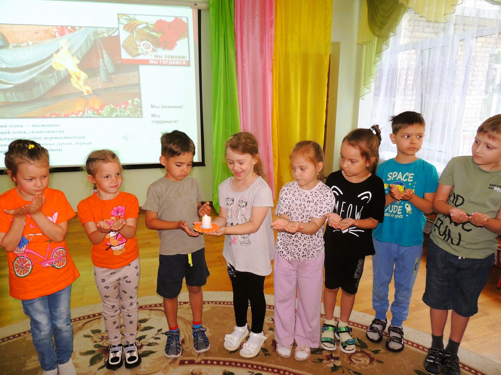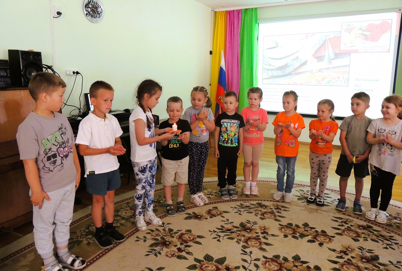 Патриотическое воспитание является одним из основных направлений дошкольного учреждения, по которому проводятся различные мероприятия. День памяти и скорби в детском саду - это возможность напомнить мальчишкам и девчонкам о тех, кому обязано жизнью подрастающее поколение. Помнить историю Великой Отечественной войны, чтить подвиги защитников Отечества - долг каждого россиянина. Память о прошлом - это способность сохранять следы минувшего, она нужна не только павшим, она нужна нам, живым, чтобы не совершать ошибок, чтобы твердо выстоять в любых испытаниях.