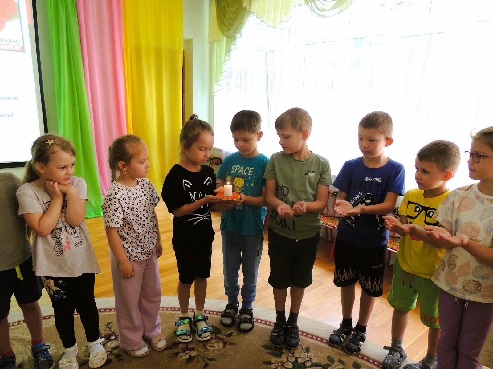 В завершении мероприятия наши воспитанники вместе с педагогами почтили память погибших минутой молчания и передали свечу памяти из рук в руки.