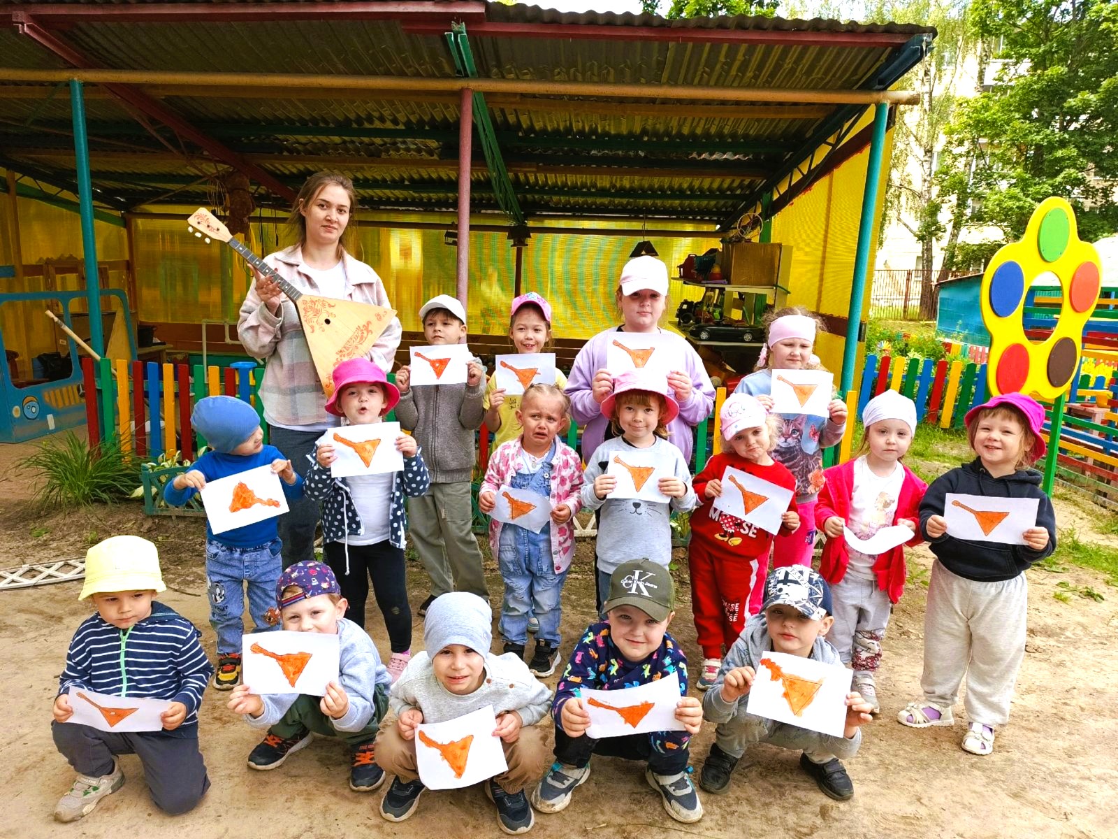Дети познакомились с историей русского народного инструмента-балалайка, с формой и материалом , с пословицами и поговорками про инструмент, активно играли в игры. Малыши изготовили свою уникальную русскую балалайку.