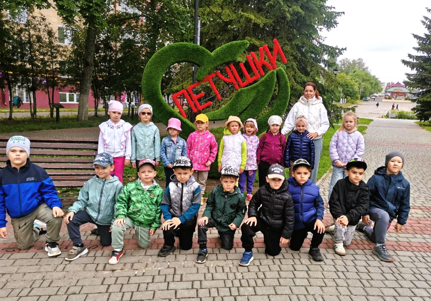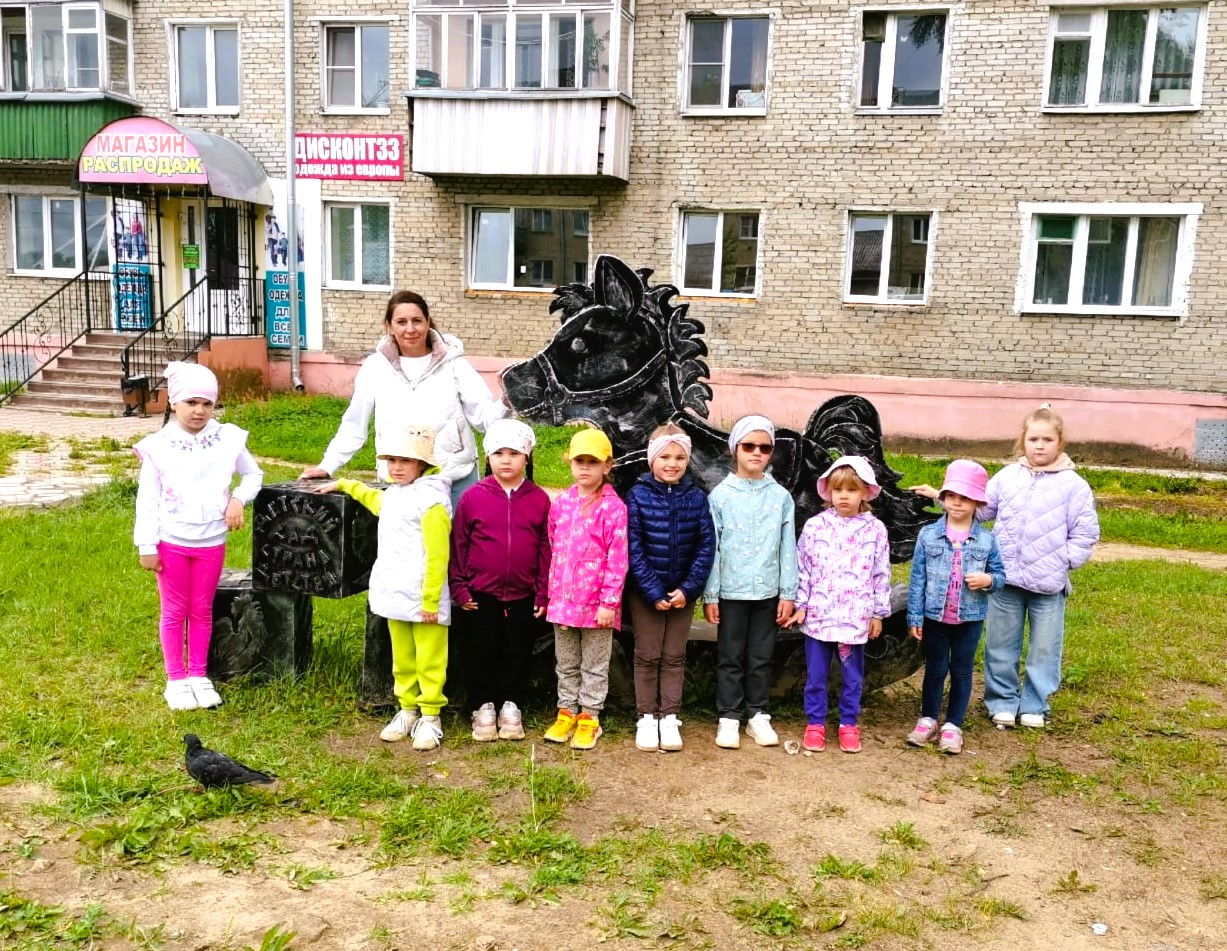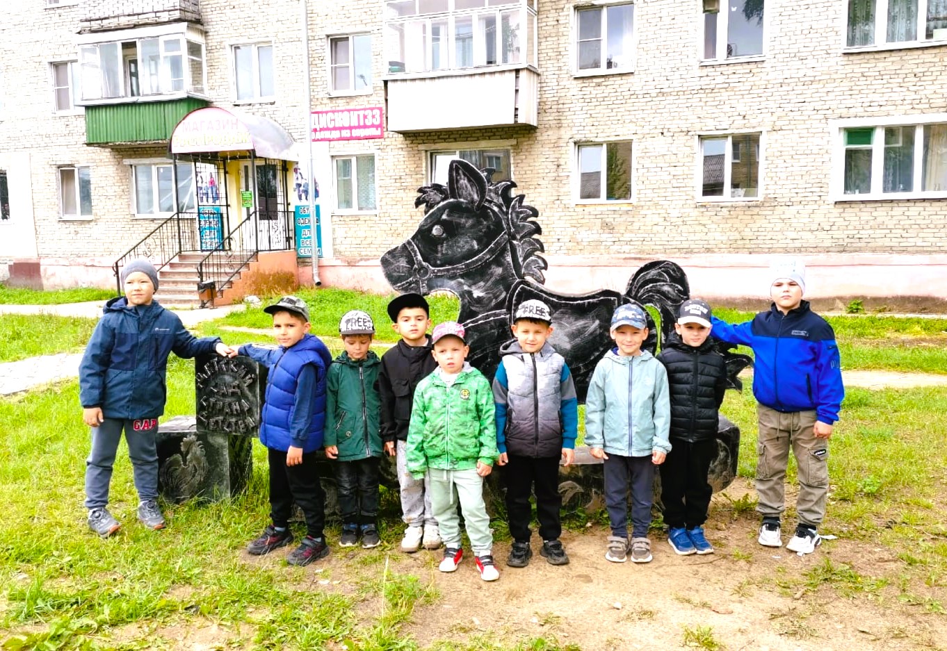 Ребята старшей группы «Лучики» с воспитателем Юденко Л.Ю. посетили Советскую площадь, городской парк, побывали возле арт-объекта, скульптуры петуха.