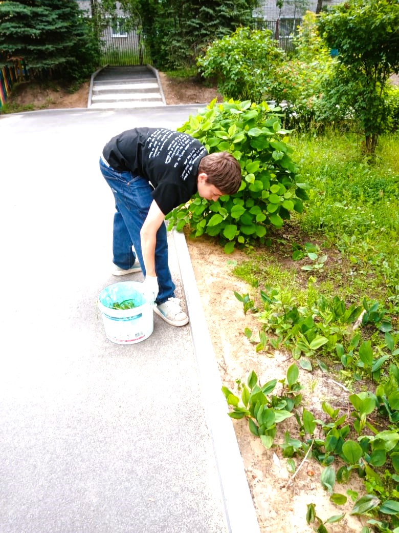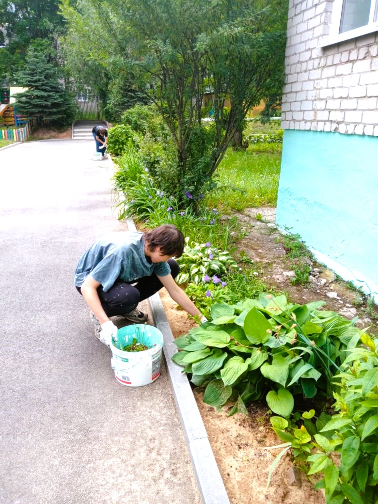 Стало доброй традицией приглашать школьников в летний период для работы по благоустройству территории детского сада.
