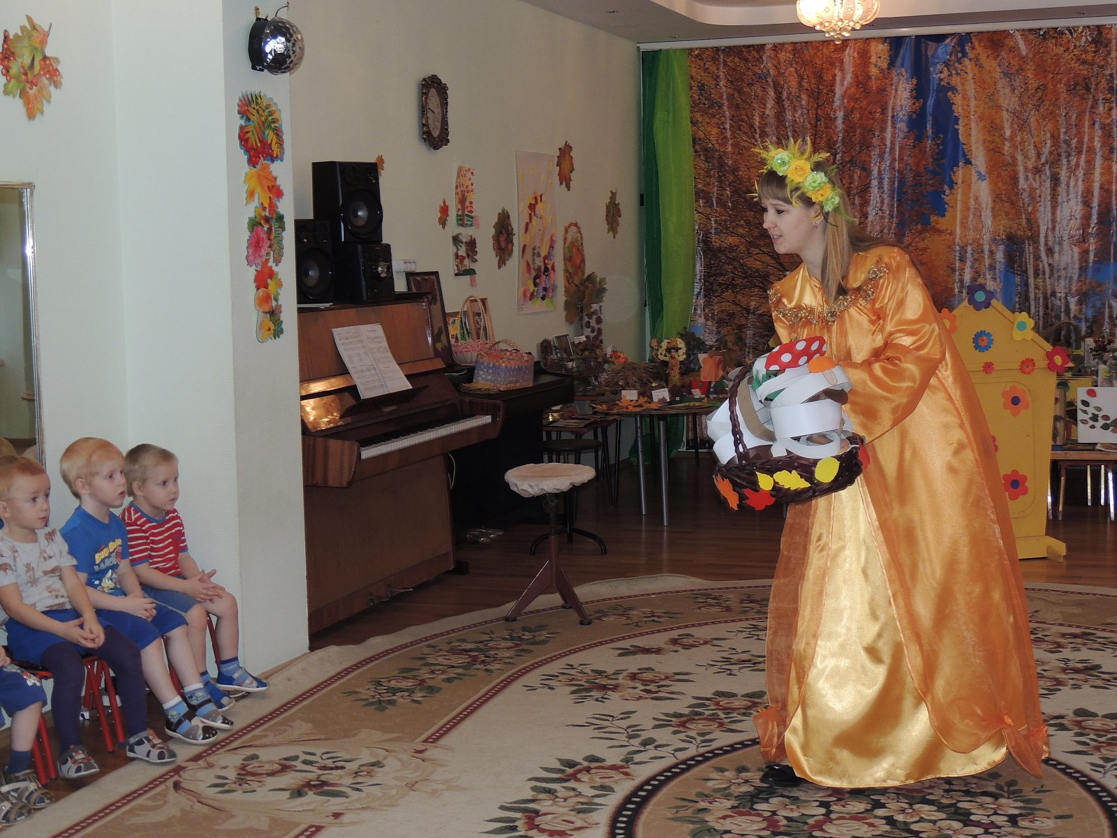 В октябре прошли осенние праздники: «Осень, осень в гости просим», «Спор грибов и ягод», «Осенины», «Осень славная –пора». Дети подготовили театральную постановку «Спор грибов и ягод» под руководством учителя -логопеда Шевяковой М.В. Музыкальные руководители Жигалова Т.В. и Гиносян А.Х. разучили мелодичные песенки про осень. Ребята продемонстрировали свои знания, называли пословицы и поговорки, читали стихи, играли в веселые игры. Осень отблагодарила детей щедрым урожаем.