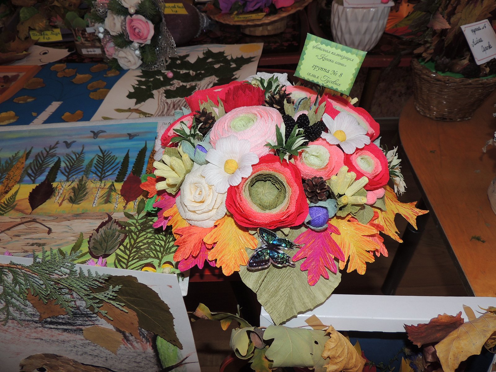 В октябре был организован детско-родительский конкурс «Чудеса из бумаги» + флористика. Каждая группа приняла активное участие в изготовлении поделок из бумаги. Родители вместе с детьми проявили свои творческие способности и умения работать вместе. Выставка работ получилась очень богатая на выдумку. Были представлены работы не только из бумаги, но и из природного материала + флористика.