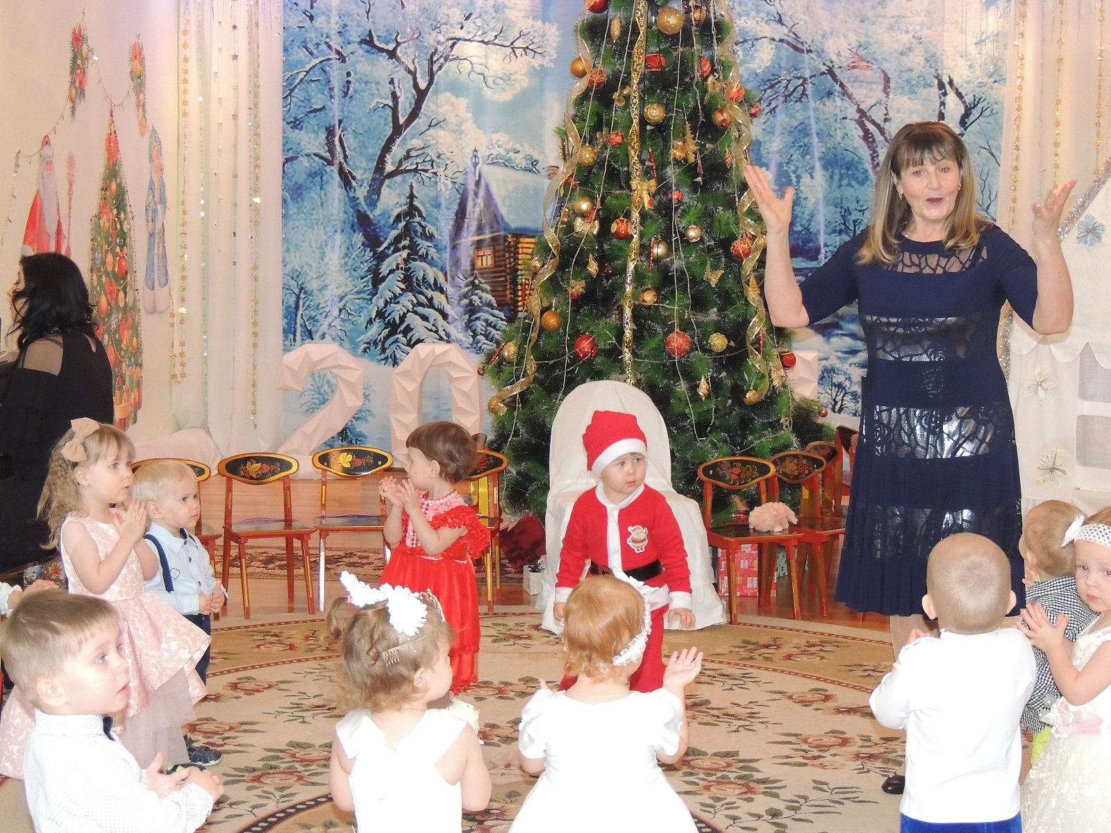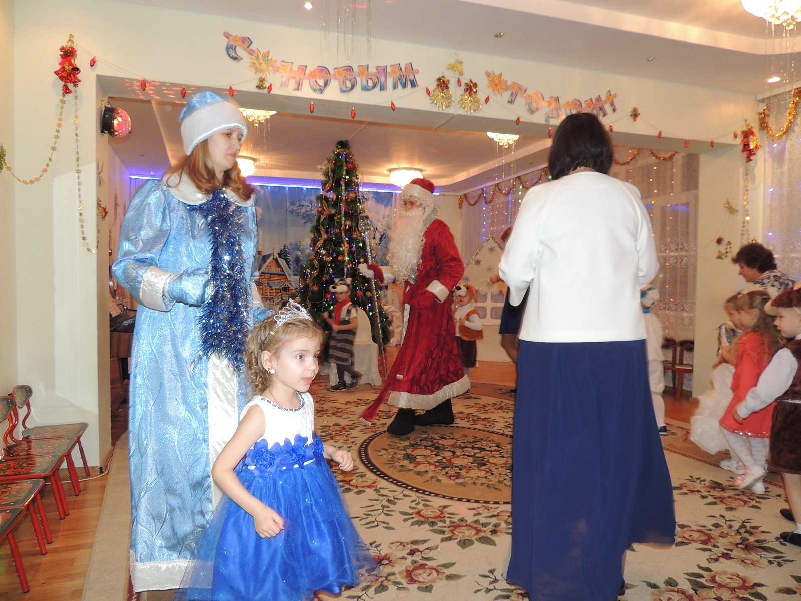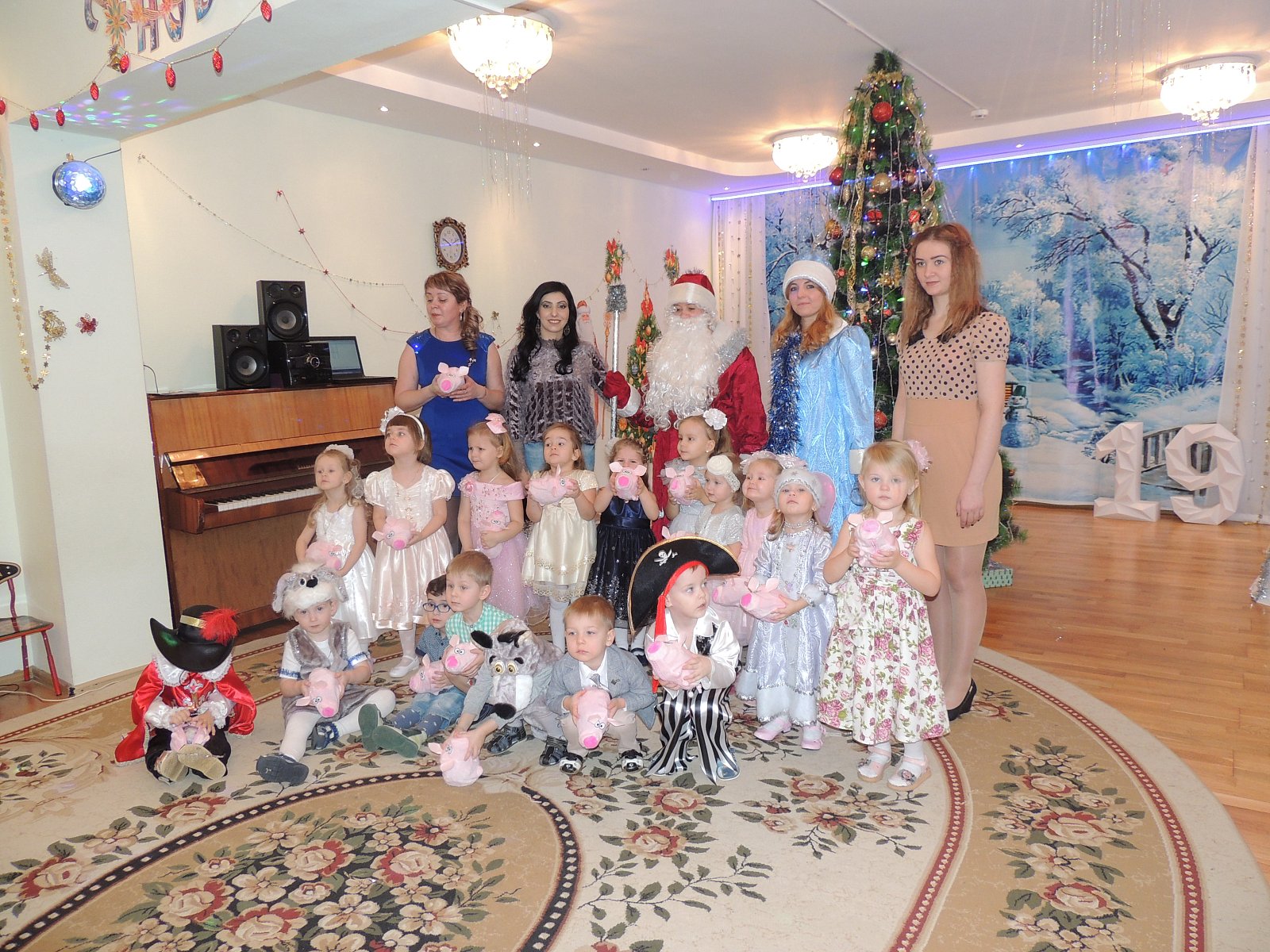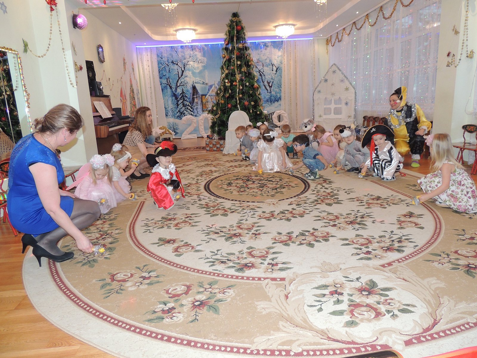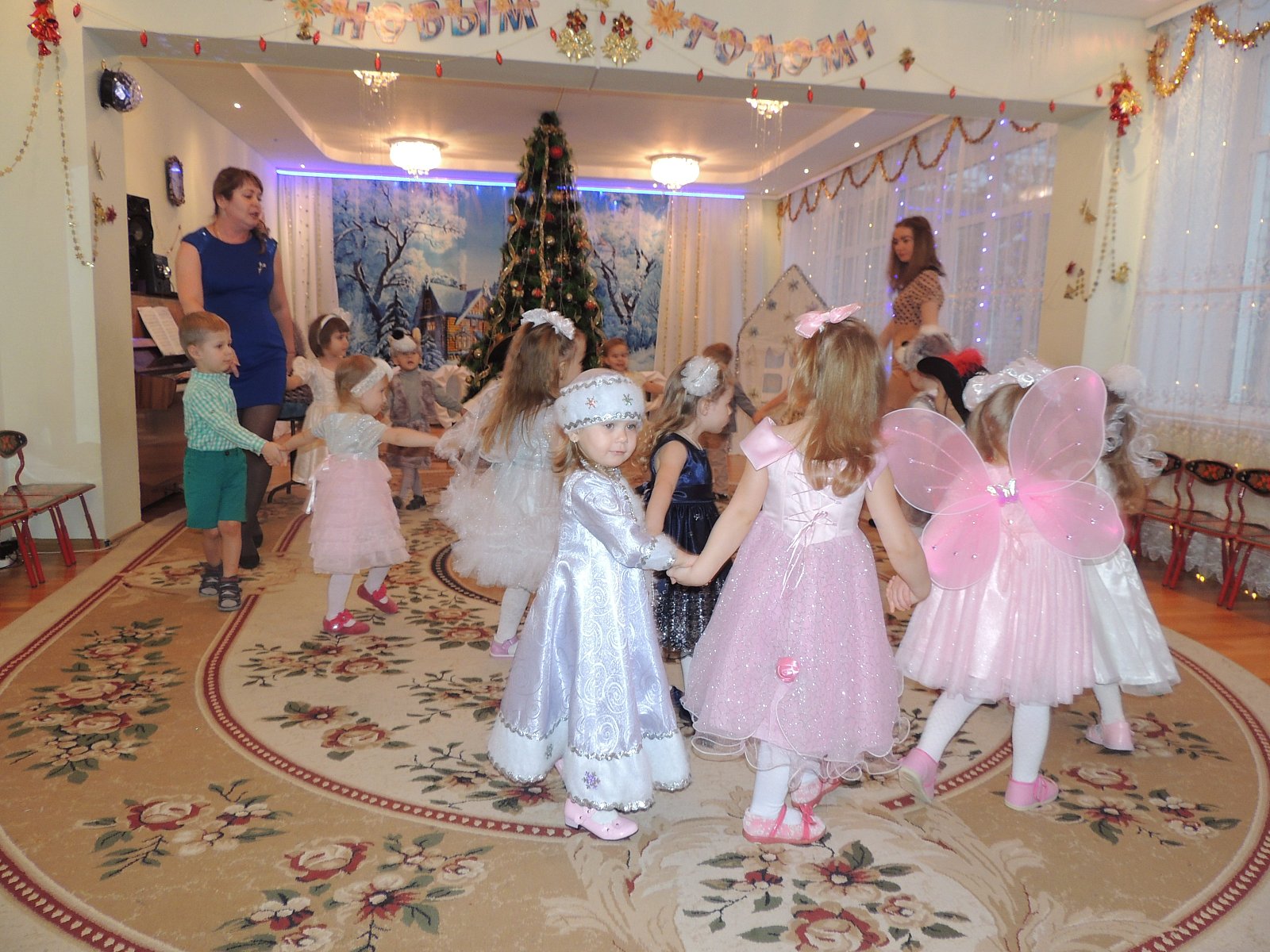Музыкальный руководитель Гиносян А.Х. пригласила ребят на Новогодние утренники: «Лесные звери в гостях у малышей», «Веселый Новый год», «Разбудим Деда Мороза», «Туристическое агентство Бабы Яги». Дети погрузились в атмосферу волшебной сказки где играли, смеялись, водили хороводы, а также побывали в разных странах.