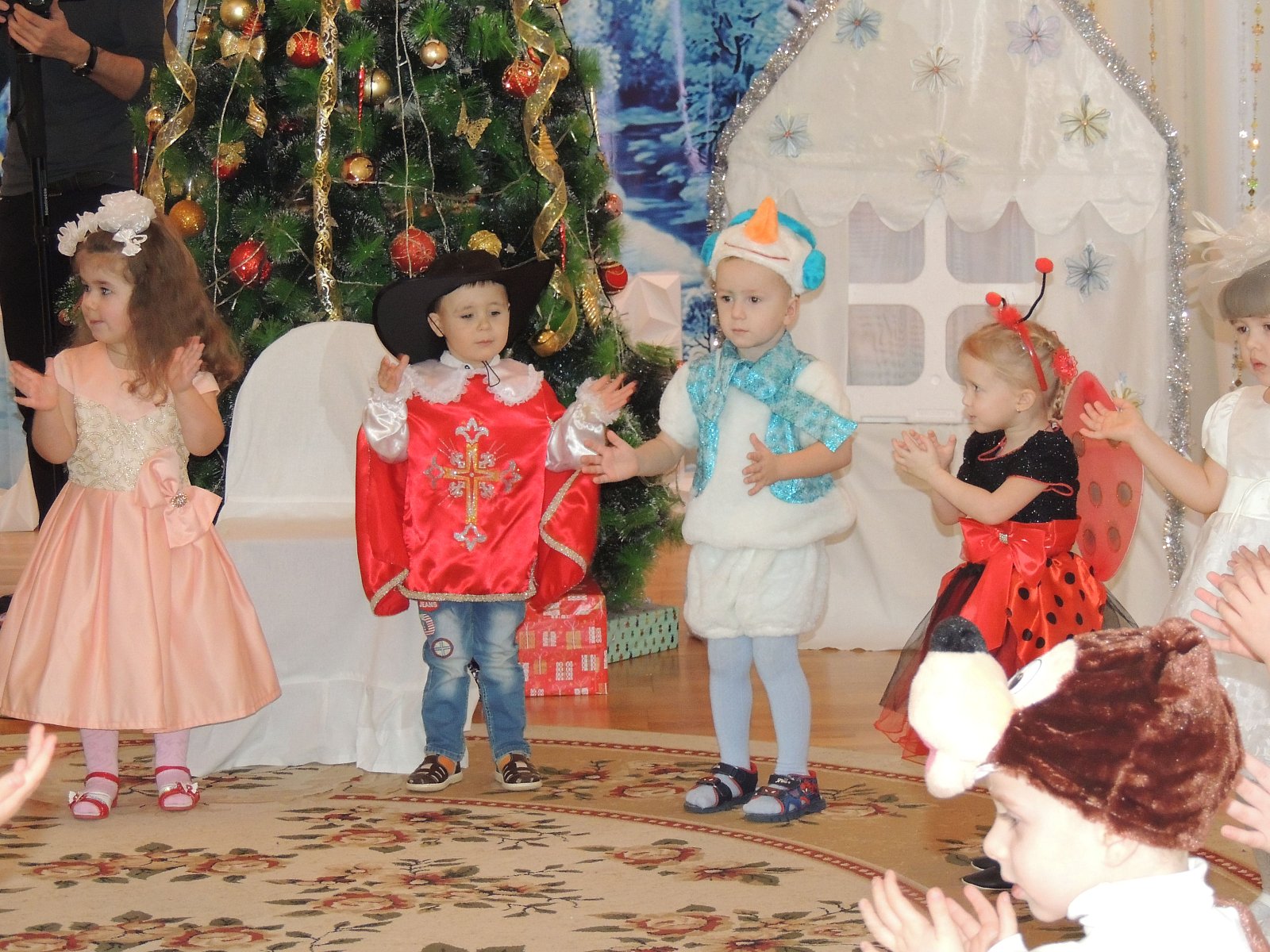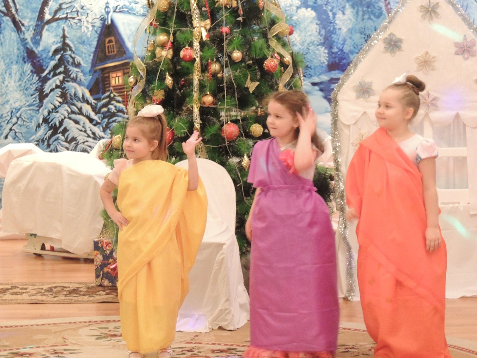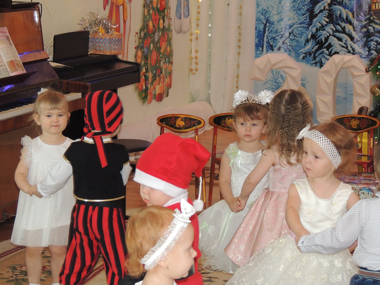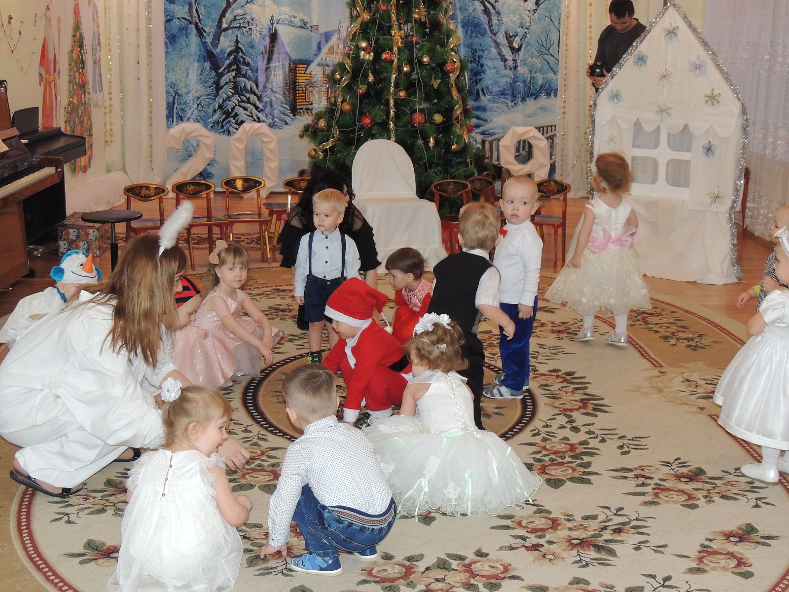 Музыкальный руководитель Гиносян А.Х. пригласила ребят на Новогодние утренники: «Лесные звери в гостях у малышей», «Веселый Новый год», «Разбудим Деда Мороза», «Туристическое агентство Бабы Яги». Дети погрузились в атмосферу волшебной сказки где играли, смеялись, водили хороводы, а также побывали в разных странах.