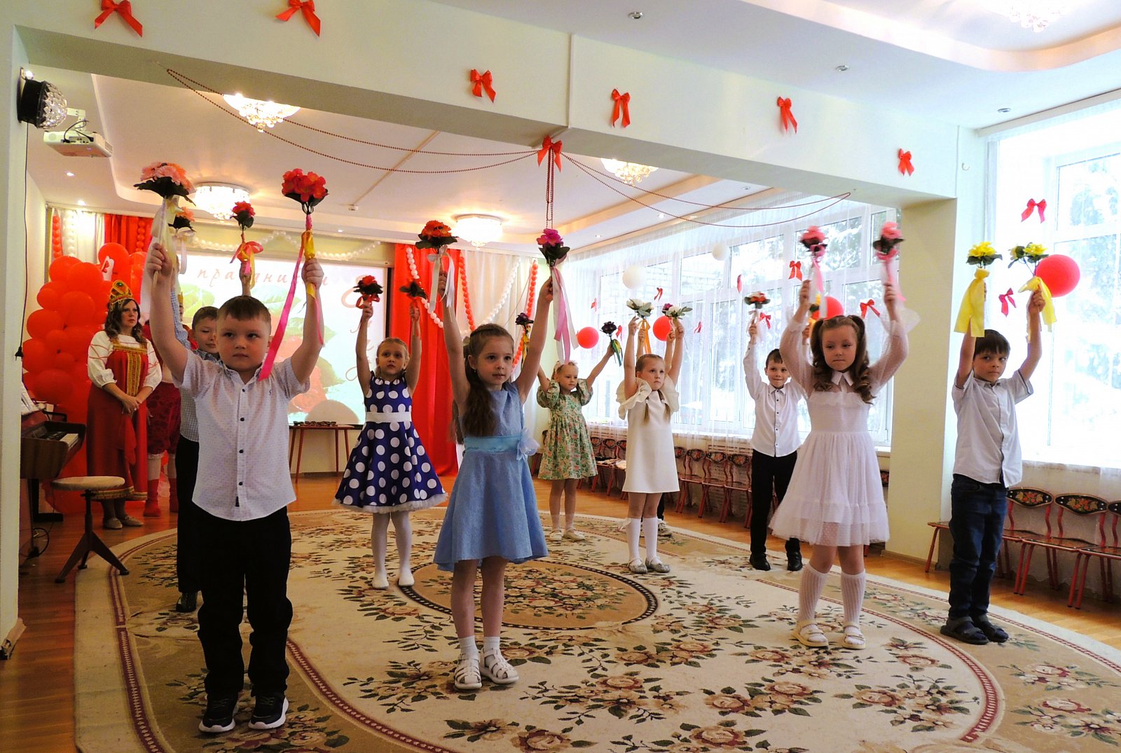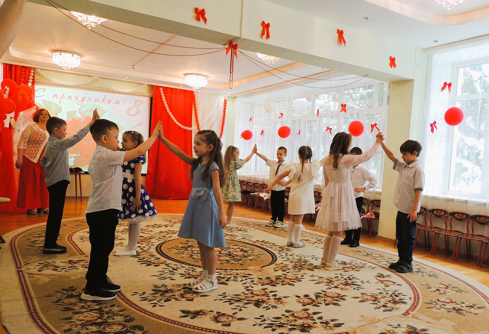 С самого утра ребята были нарядные, сияющие и с нетерпением ждали встречи с самыми дорогими гостями — мамами и бабушками. Праздник открылся трогательными стихами о маме и бабушке, а душевные песни в исполнении детей растрогали всех до слёз.